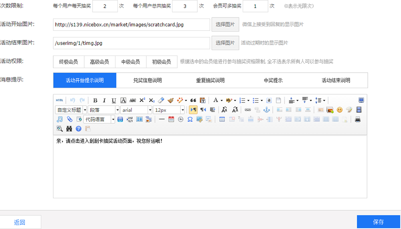 粉丝通过手机屏幕进行刮奖,生动形象,商家只需设置活动时间、活动规则、活动奖品等基本信息即能发起活动,粉丝中奖后直接联系商家获得奖品。