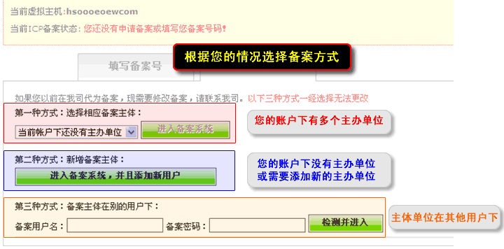 输入备案用户名和密码即可进入到备案系统.三种方式进入的备案系统界面都一样.如下图: