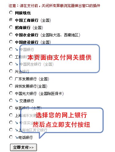 5、进入银行网站,开始支付,以下以工商银行为例,其它类似