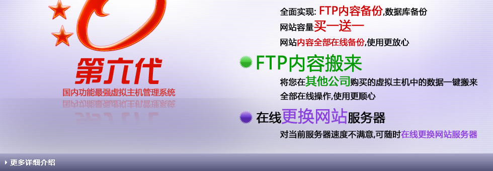 蜘蛛林网站建设云虚拟主机,功能强大,特点突出、优势明显。主要包括:安全稳定高速的机房环境,详尽完善的主机产品体系,合理低廉的主机产品价格,电信、双线、美国、香港等多线路任意选择,在线网站制作系统 “